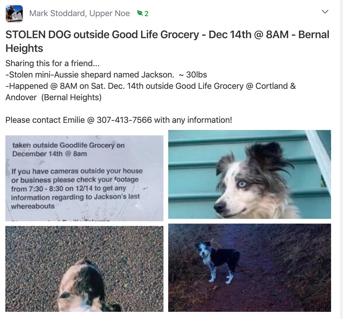Mini Australian Shepherd Stolen From Outside Grocery Store In San Francisco S Bernal Heights Abc7 San Francisco