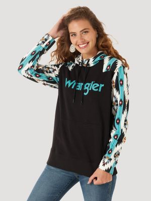 Women S Wrangler Retro Logo Southwestern Yoke Pullover Hoodie